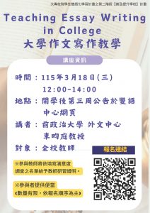 (三)主題:Teaching Essay Writing in College大學作文寫作教學。