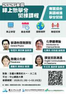 國立中山大學雙語教育資源中心2026年寒假四門線上EMI銜接微學分課程資