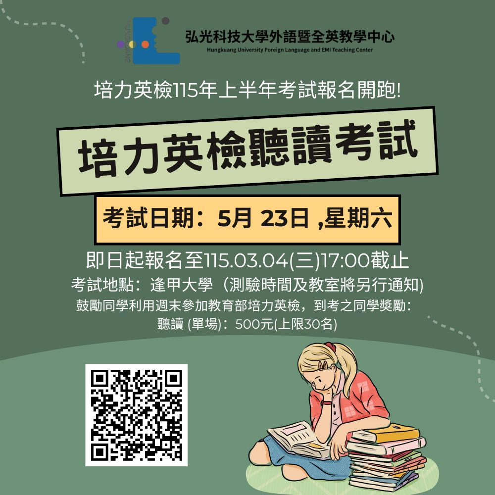 115年(上半年)培力英檢聽讀測驗、說寫聽讀測驗